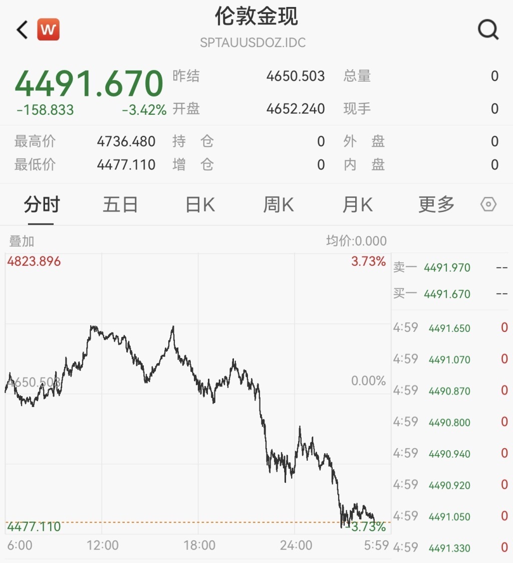 现货黄金价钱跌破4500好意思元,创43年最大单周跌幅。