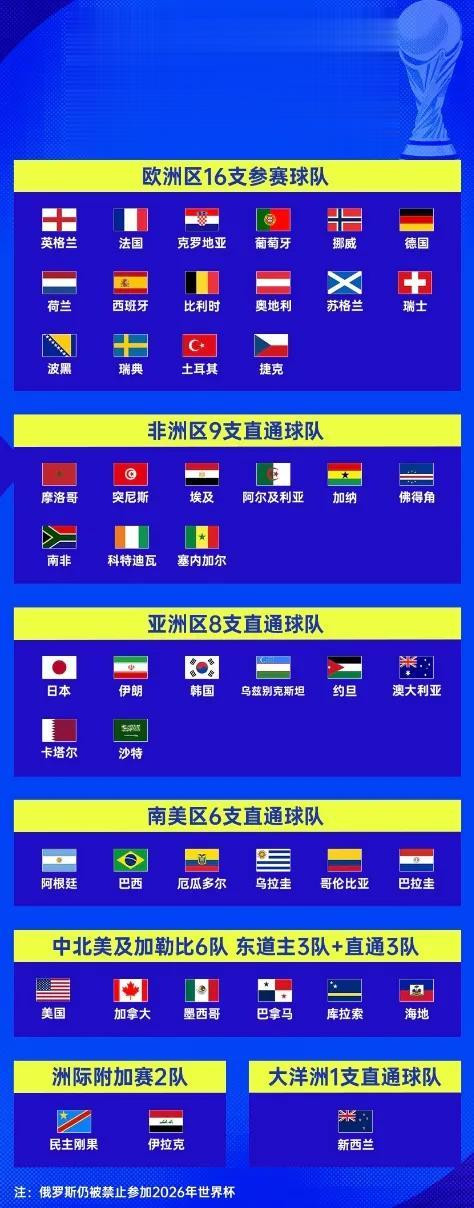 欧洲区产出14支球队,雅博体育app非洲区9支,亚洲区8支,南好意思区6支,中北好意思及加勒比海地区6支,大洋洲1支,加上人好意思国、加拿大、墨西哥。12个小组,每个小组4支球队,小组前两名平直出线,豪门国际娱乐获利最佳的8个小组第三也能晋级,最终32支球队参加淘汰赛。