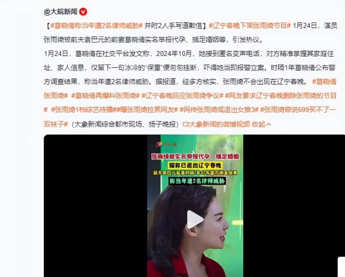 最近张雨绮关联词把“热搜体质”发达到了极致,不外此次不是靠红毯造型或霸气发言,而是卷进了闹得沸沸扬扬的代孕争议里。辽宁春晚临阵把她的节目砍掉,代言品牌连夜撤告白,连综艺镜头齐被网友喊话要删减,好好的星女郎,怎样骤然就成了圈子里的“避瘟神”?