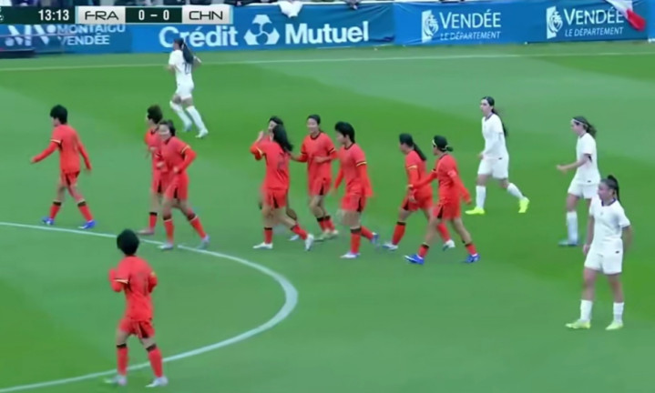 失球后法国队加强逼抢,屡次尝试边路传中与远射,但中国队防地协同严实,杨雨婷屡次关节扑救力保城门不失。上半场尾声,中国队屡次通过中场传递浸透法国防地,可惜未能再度扩大比分。