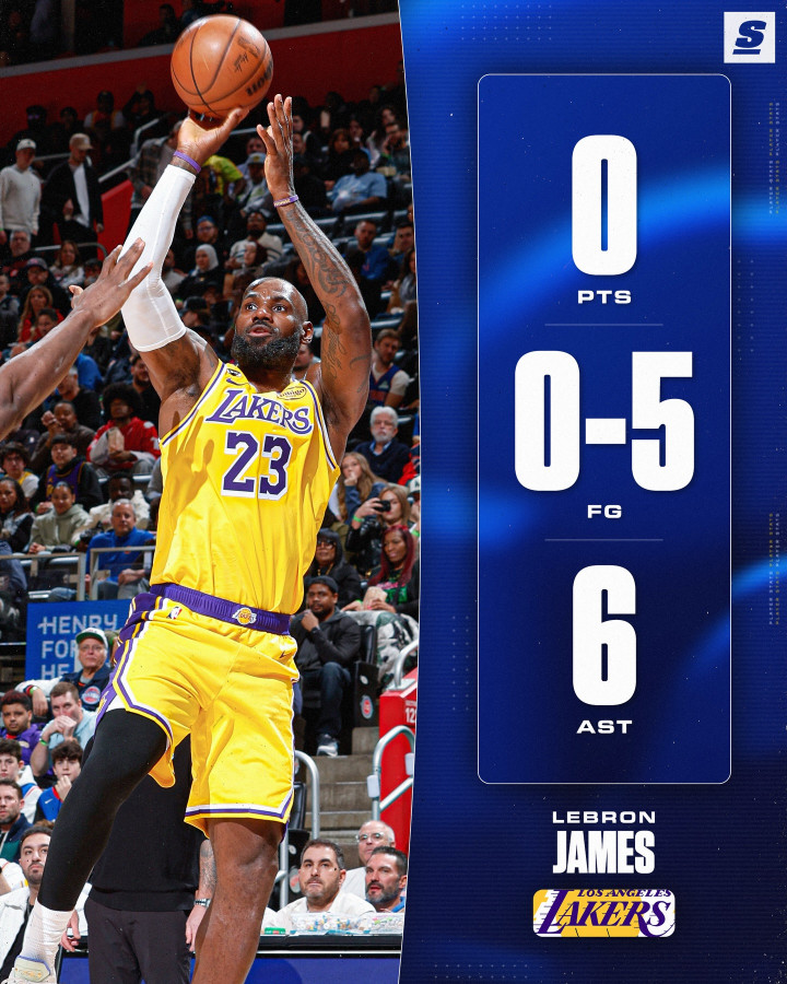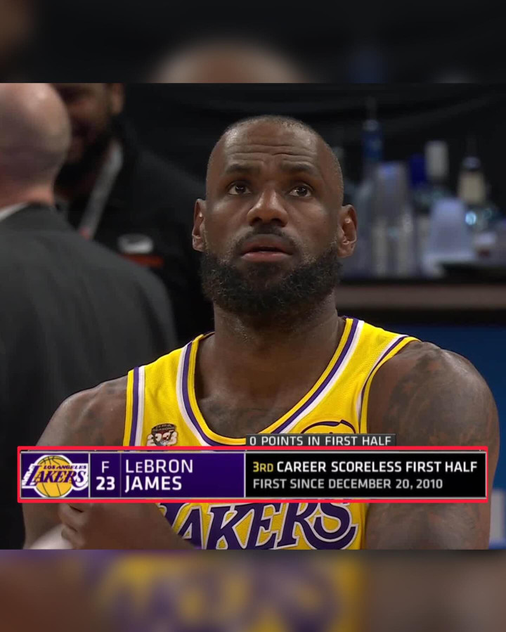 这场比赛勒布朗詹姆斯上半场一分未得,直到第三节还有5分钟的期间,才拿下本场比赛的第一分。整场比赛,勒布朗詹姆斯打了38分钟,10投4中,三分球2投1中,罚球3投3中,打出了12分,9个篮板,10次助攻的准三双数据。