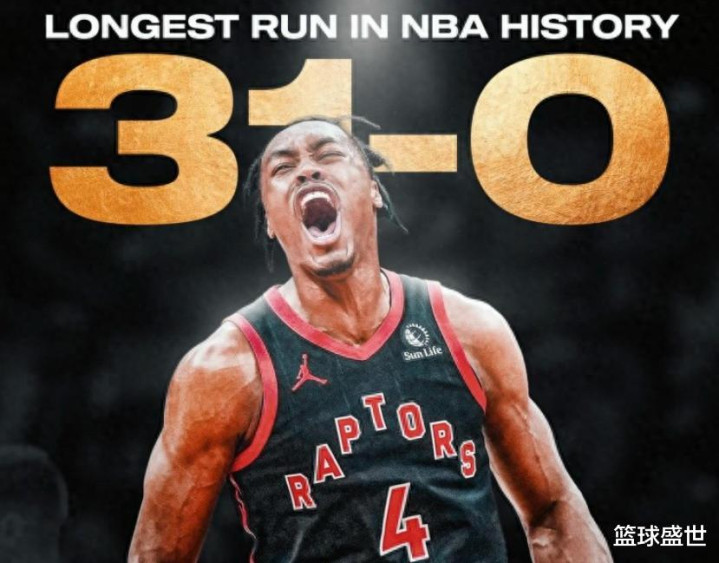 除此除外,在巴恩斯带队下,猛龙节间轰出一波31-0的超等膺惩热潮,刷新此前独行侠2023年对阵雷霆时的30-0得分热潮,成为NBA历史上最大差距的一波得分零封热潮。