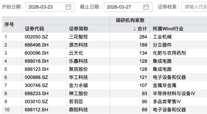 3月23日至3月27日,162家上市公司闪现机构投资者调研纪录。其中,三花智控获284家机构调研,理睬调研机构门户居首。