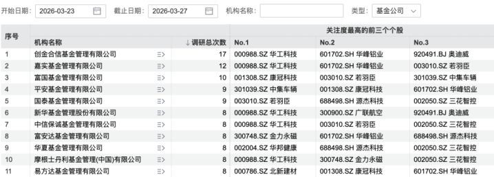 此外,从基金公司调研情况看,华工科技、华峰铝业、金力永磁、源杰科技等个股受爱重。