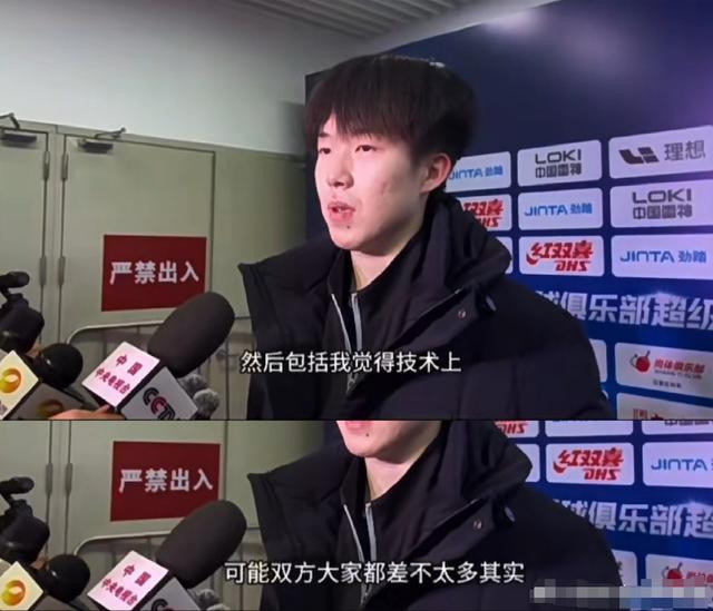 2025年全运会男单半决赛前,记者采访王楚钦,大头示意“目前两边技艺方面齐差未几,我方和樊振东的技艺是五五开!”。