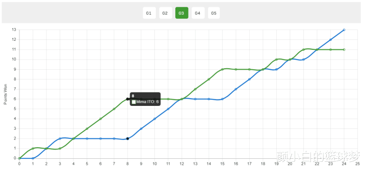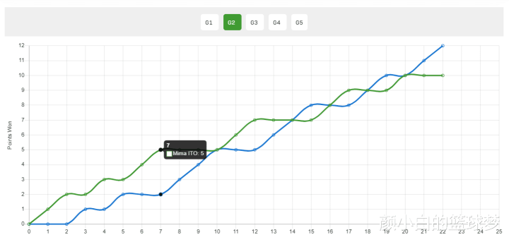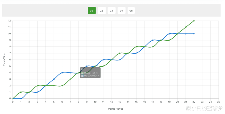 第二局伊藤好意思诚在5-1越过的情况下被张默扳平,伊藤7-5反超后又被张默扳平,随后8-8、9-9、10-10,这一次环节分是宿将张默拿下。