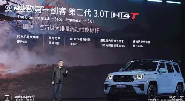 能源方面,坦克700Hi4-Z搭载2.0T插混能源系统,发动机最大功率185kW,匹配59.05kWh的三元锂电板组,其WLTC工况下纯电续航里程为190km,WLTC空洞续航1191km。同期,其领有拖挂禀赋,拖挂总质料为不带制动750kg,带制动2500kg。新款坦克700Hi4-T搭载3.0TV6插混系统,空洞功率385kW,空洞扭矩800N·m,WLTC纯电续航90km。